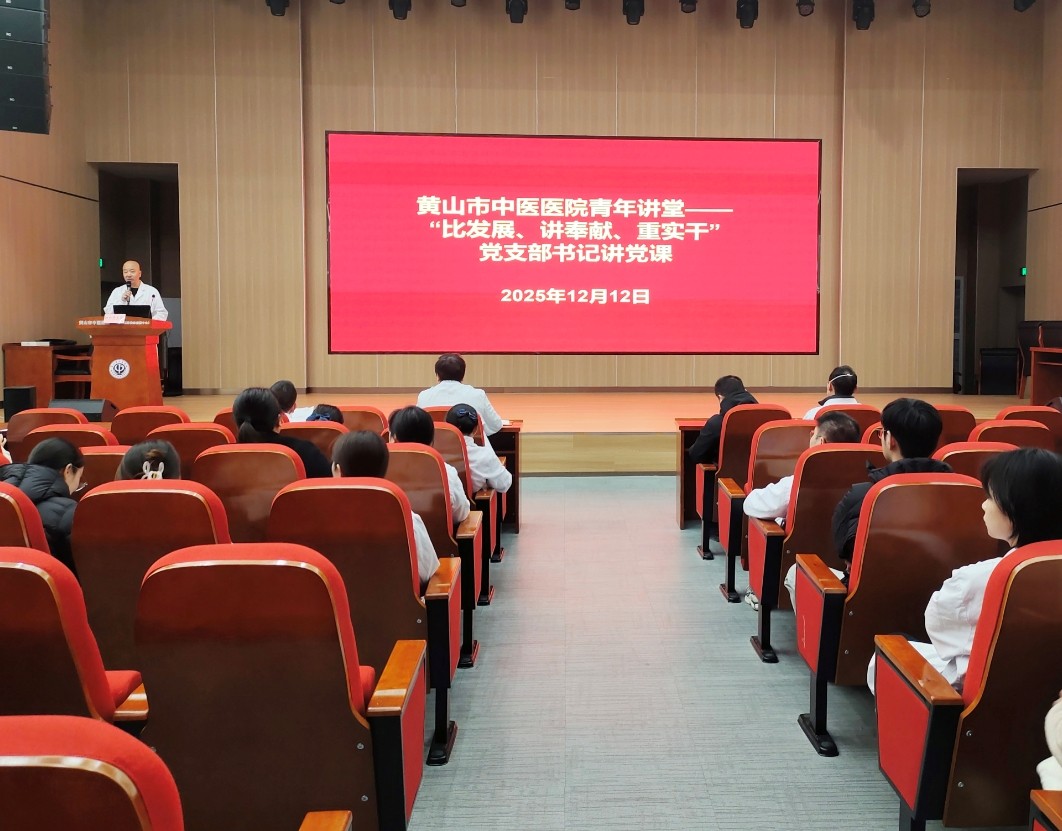 党建引航承岐黄 新安薪火启青衿——黄山市中医医院举办青年讲堂2025-12-13为深入贯彻落实市委、市政府“比发展、讲奉献、重实干”作风建设工作要求,深化“双培养”机制成效,12月12日下午,黄山市中医医院党委在行政一楼多功能报告厅举办青年讲堂活动。医院党政领导班子成员、党支部书记及全体党员、发展对象、入党积极分子共同参与,党委委员汪伟主持活动。活动以“党建引航承岐黄,新安薪火启青衿”为主题,旨在搭建党支部书记与青年职工的交流帮带平台,激发青年干事创业热情与新安医学传承活力。开场环节,主持人汪伟详细介绍活动背景与意义,强调党支部书记在青年职工成长培养中的引领核心作用,正式宣布活...新闻动态 -